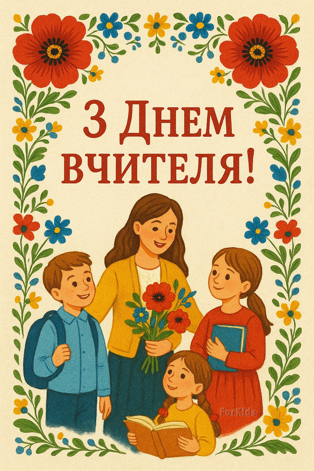 Ми підготували 20 красивих зображень і листівок до Дня вчителя 2025 року – з букетами, дошкою, дитячими малюнками, українськими мотивами та теплими словами.