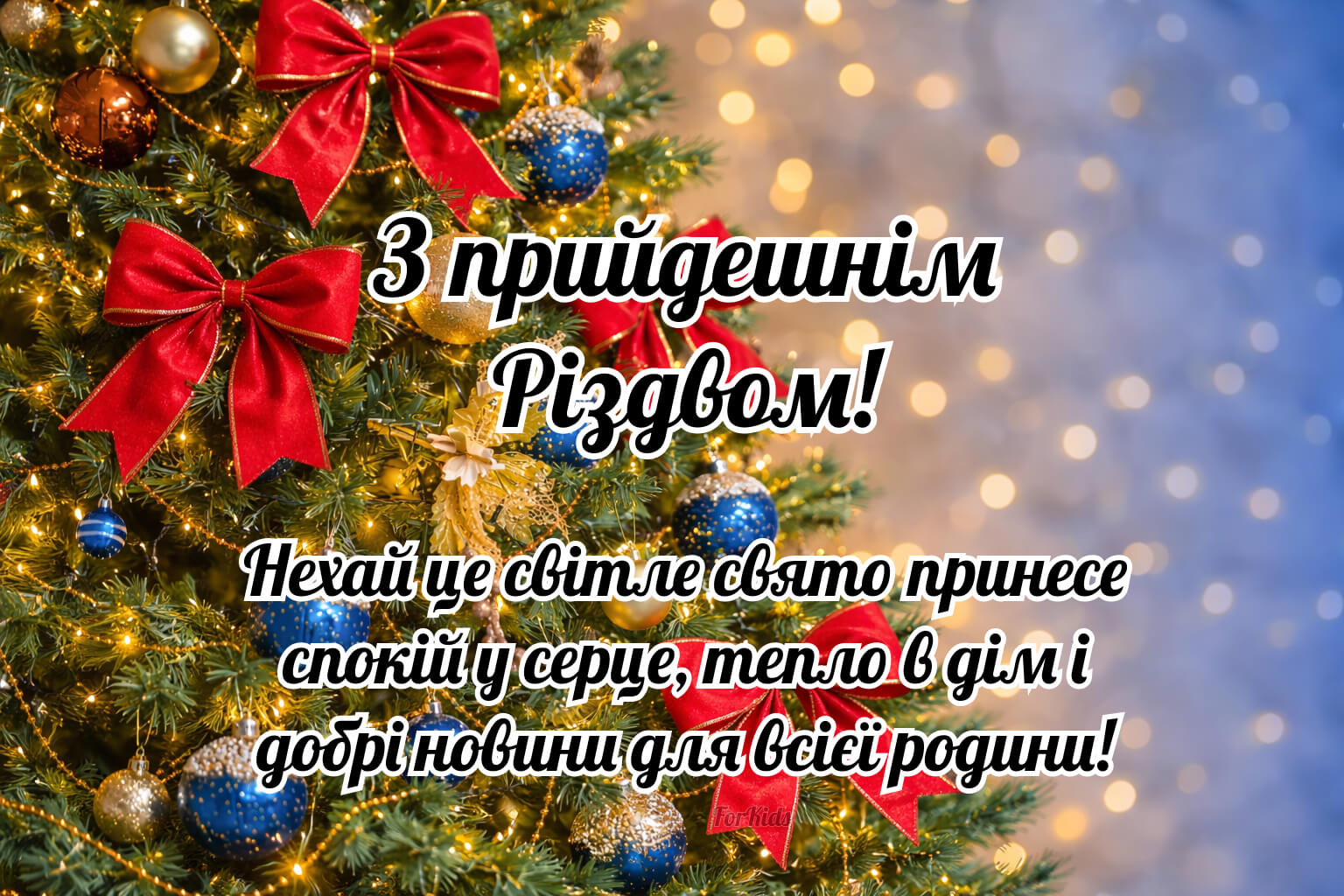 - З прийдешнім Різдвом Христовим! Нехай це світле свято принесе у ваш дім спокій, тепло та радість. Бажаю мирного неба, здоров’я й щирих святкових митей поруч із рідними.